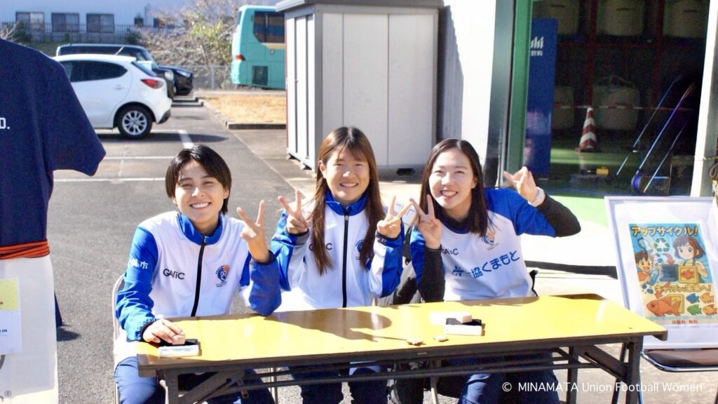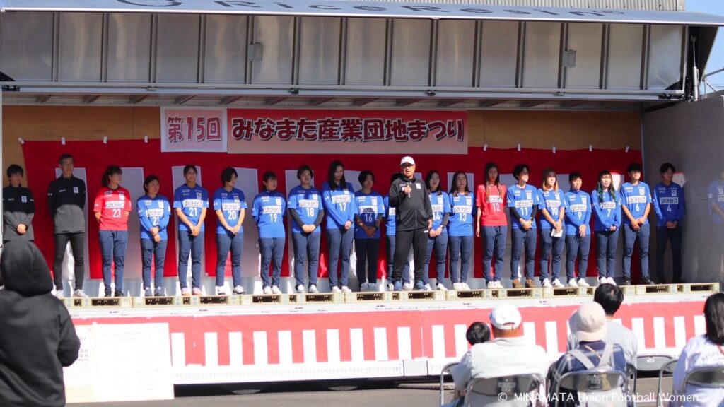 日頃から多くの選手を雇用して下さっている企業の方以外にも、まだまだ私達の事を知らない地元の皆さんにこのような機会を通して少しでもユニオンに興味を持ってもらう為に今シーズンの報告もさせていただき、改めて私達がサッカー以外のイベントや活動に参加する事の重要性や水俣で活動する意義があるなと感じました。